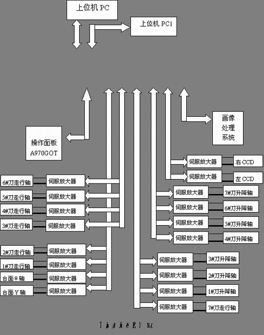隨著現(xiàn)代工業(yè)的發(fā)展,對于產(chǎn)品制造加工所要求的精度越來越高,特別是在電子工業(yè)中,所要求生產(chǎn)加工的精度要求很高,在現(xiàn)代日常生活中,許多日用電子產(chǎn)品的更新?lián)Q代特別快,所用的研制開發(fā)、生產(chǎn)周期特別短,而在此環(huán)節(jié)中,生產(chǎn)環(huán)節(jié)就顯得尤為重要,所以就對生產(chǎn)設(shè)備的要求也就越來越高,生產(chǎn)設(shè)備要能夠適應(yīng)多種不同產(chǎn)品的生產(chǎn),特別是新產(chǎn)品的生產(chǎn)適應(yīng)能力,還要能夠保證產(chǎn)品的精度Q系列 在TFT生產(chǎn)中,在基板完成電路印刷等一系列的工作以后有一道工序,就是基板的切割,因為在前道生產(chǎn)根據(jù)設(shè)備和工藝的要求是一塊比較大的基板,在一塊大的基板上可能有好多塊小的基板組成,這根據(jù)制造面板本身的用途來定定位模塊 如手機面板,目前在生產(chǎn)的一塊大的基板上有30到104塊不等的小的基板組成,這還要根據(jù)手機面板的尺寸來定,如圖1所示定位模塊 經(jīng)過切割以后,變成一片一片小的基板,如圖2所示定位模塊 從圖2可以看出,基板由兩層玻璃組合而成,在兩層之間有印刷電路,而且在切割的時候上下不是在一條線上,而是成一個階梯狀,在TFT面的A處有印刷電路端子,切斷過程中絕對不能碰傷端子應(yīng)用 在如圖3中所示,A-F中5個尺寸精度要全部達到±0.1mm,并且切斷后在基板的邊緣不能有毛邊,這樣就要在切斷過程中要很好的控制壓力、切入量,根據(jù)不同玻璃材質(zhì)就要設(shè)定不同的壓力和切入量,另外切斷的步驟也是比較重要的,一般都采用的步驟是:①CF面 切②TFT面 剖③TFT面 切④C F面 剖應(yīng)用 在現(xiàn)在劃線設(shè)備中都是采用的多把刀(以前都是單刀作業(yè)),一般在5-7把刀,此系統(tǒng)中采用了5把刀,在此系統(tǒng)中刀的切入量和左右運動都采用伺服系統(tǒng)來控制,而且都采用了高速運動,這樣能夠大大提高工作的效率應(yīng)用