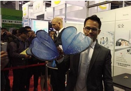 這只蝴蝶僅重32克,翅膀展開長50cm,而它身上僅帶有一個傳感器和舞動翅膀的機械構造,它的飛行路線完成靠場地上數(shù)個攝像頭的幫助。這設計可以最大限度地減輕處理器的負擔和盡量保持蝴蝶體型輕巧,最重要是可以控制成群機械蝴蝶飛舞。